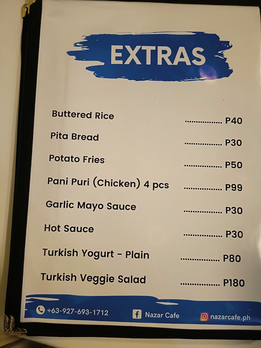 Nazar Turkish Cuisine - Malvar, Batangas Menu